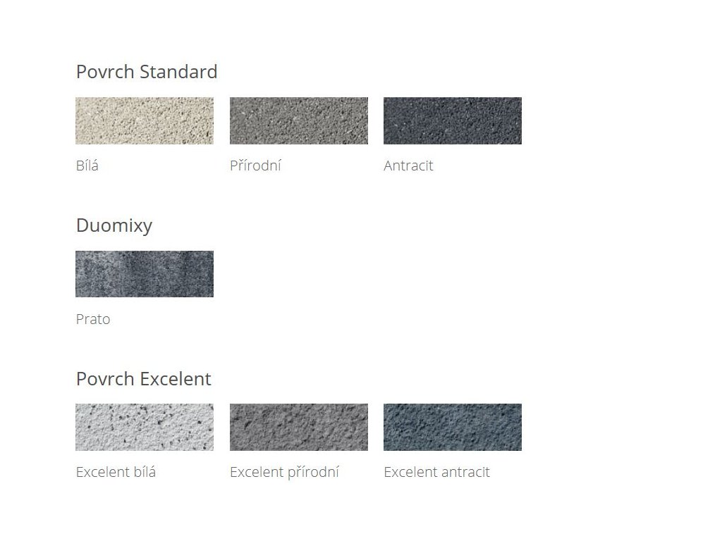- nášlapová vrstva se při výrobě ošetřuje speciální hydrofobizační přísadou, která výrazně zlepšuje utěsnění kapilár a omezuje tvorbu výkvětů. Ošetřená dlažba je odolnější proti znečištění a snadno se udržuje.