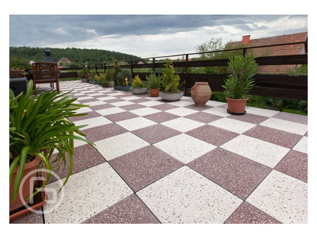 Vymývaná dlažba - je určena na pochozí plochy, které jsou méně zatěžované, jako např.chodníky, terasy, okolí bazénů, cestičky v okrasných zahradách. Dlažba je mrazuvzdorná, pevná, odolná proti obrusu, má výborné protiskluzové vlastnosti. Dlažba má výjimečný a nadstandardní vzhled, vyrábí se v několika barevných variantách.